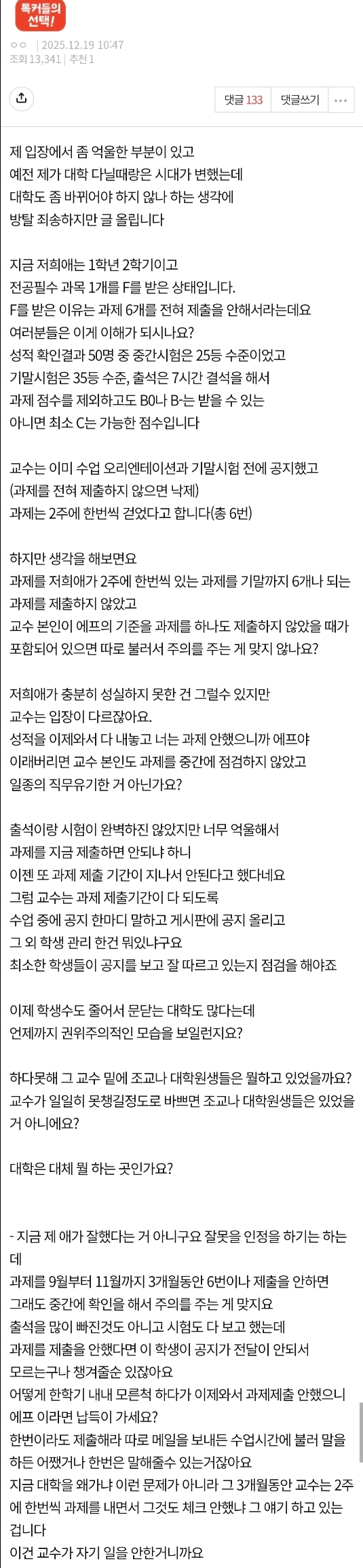 [기타] 요즘 대학 교수는 학생관리를 전혀 안하나요? [댓글수 1]