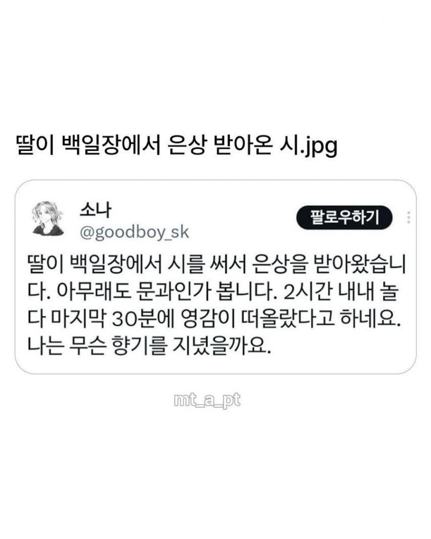 [기타] 딸이 백일장에서 은상 받아온 시 [댓글수 1]