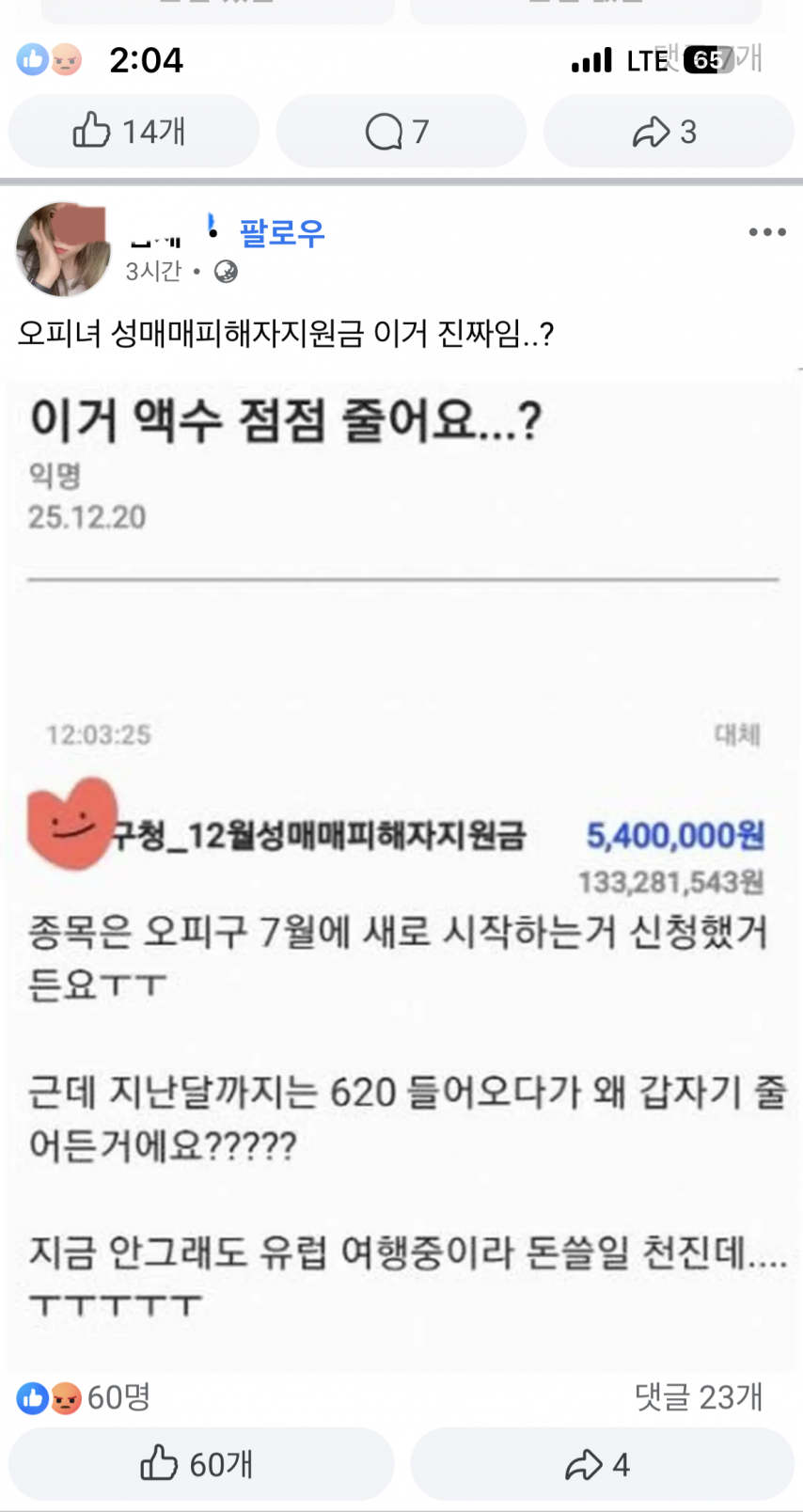 [엽기] 오피녀 성매매피해자지원금 최신 근황ㄷㄷ.jpg [댓글수 1]
