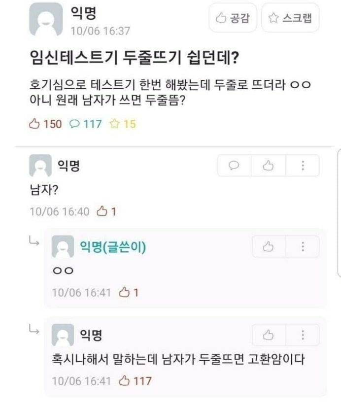 [유머] 임신테스트기 두줄뜨기 쉽던데? [댓글수 1]