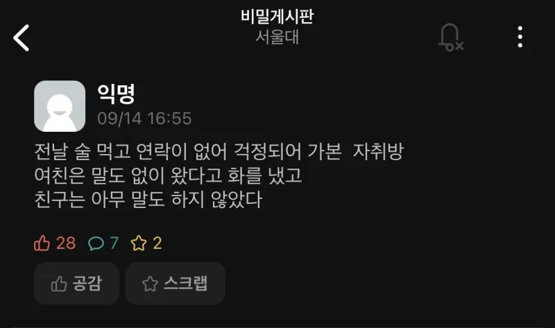 [기타] 서울대생의 슬픈 전여친 삼행시 [댓글수 2]
