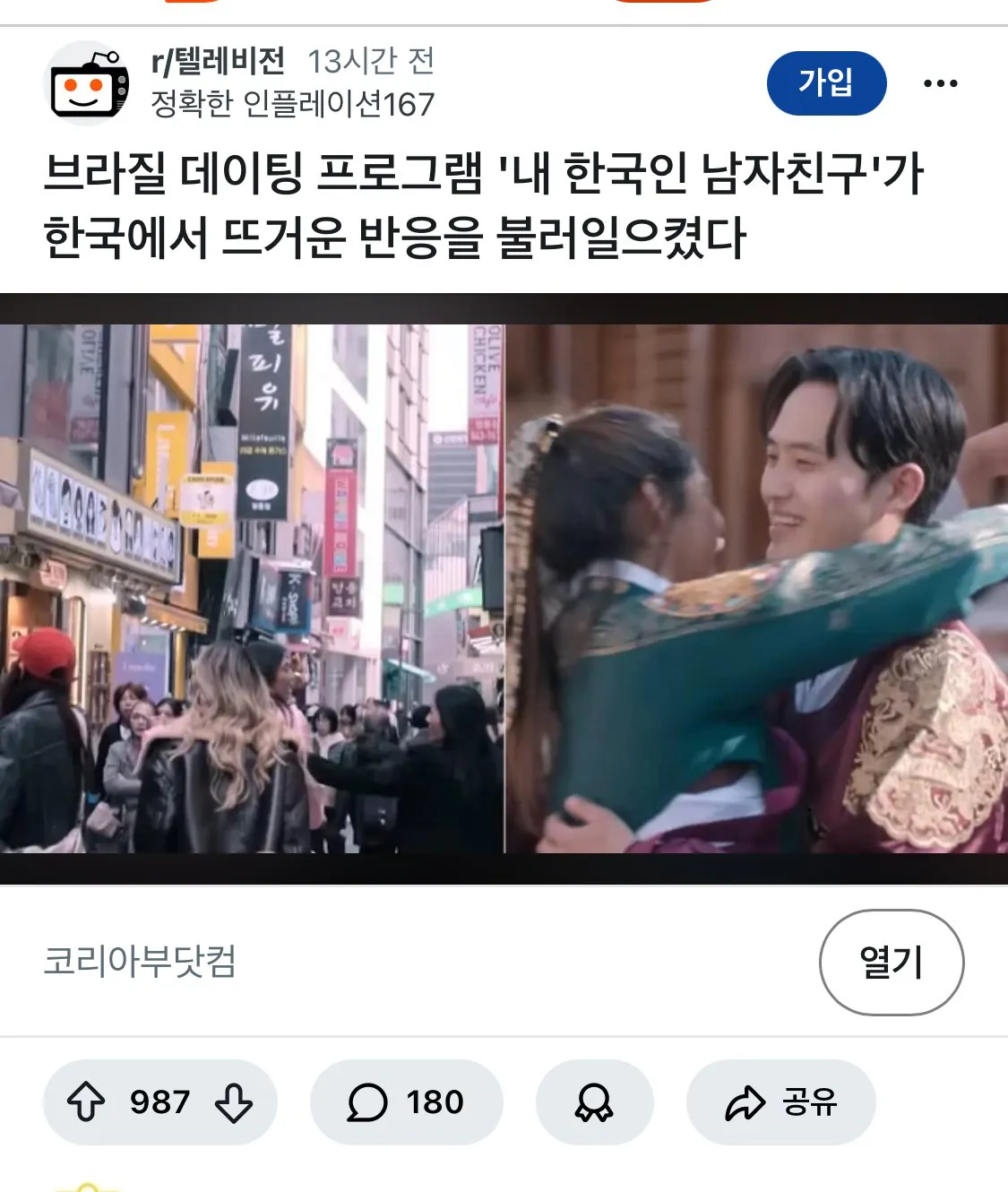 [기타] 브라질 연애프로그램 ’내 한국인 남자친구‘ 레딧 반응 [댓글수 1]