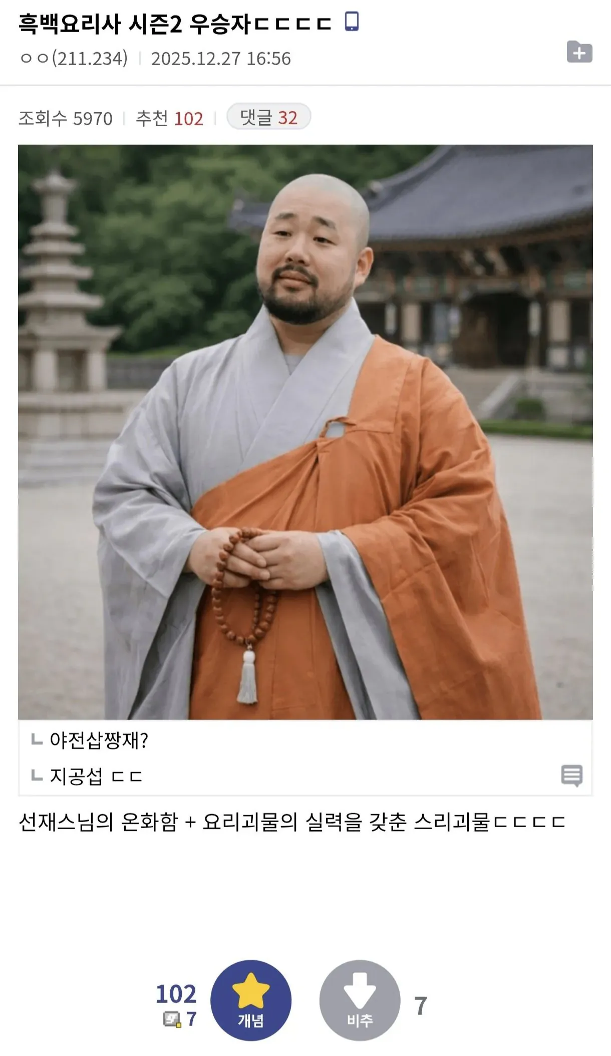 [유머] 디씨에 올라 온 흑백2 우승자 스포.jpg [댓글수 1]