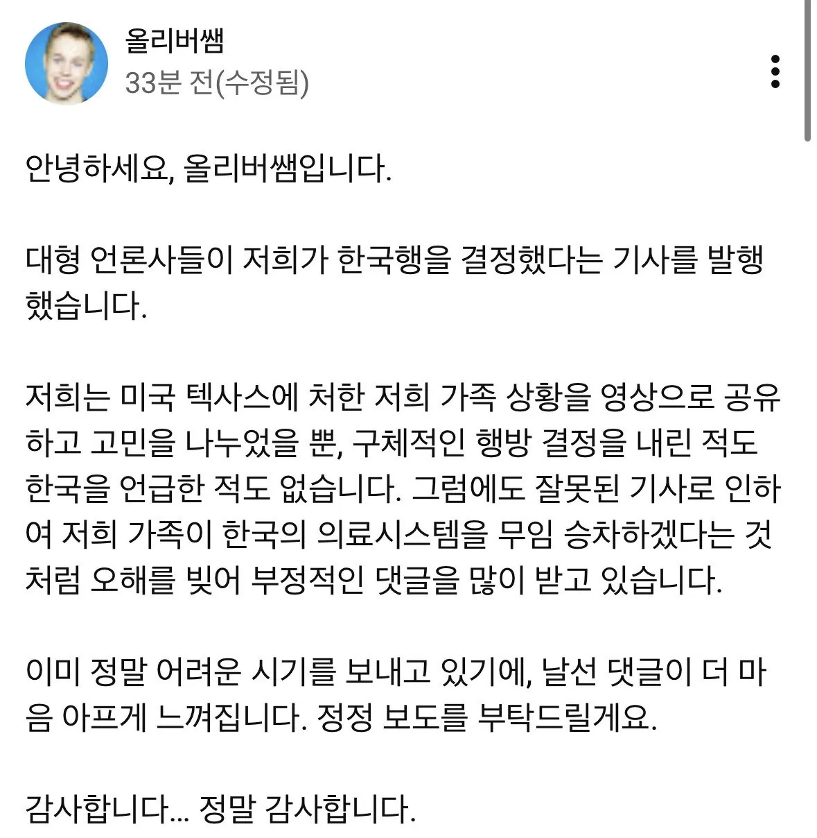 [기타] 실시간 올리버쌤 : "안녕하세요, 올리버쌤입니다." [댓글수 1]