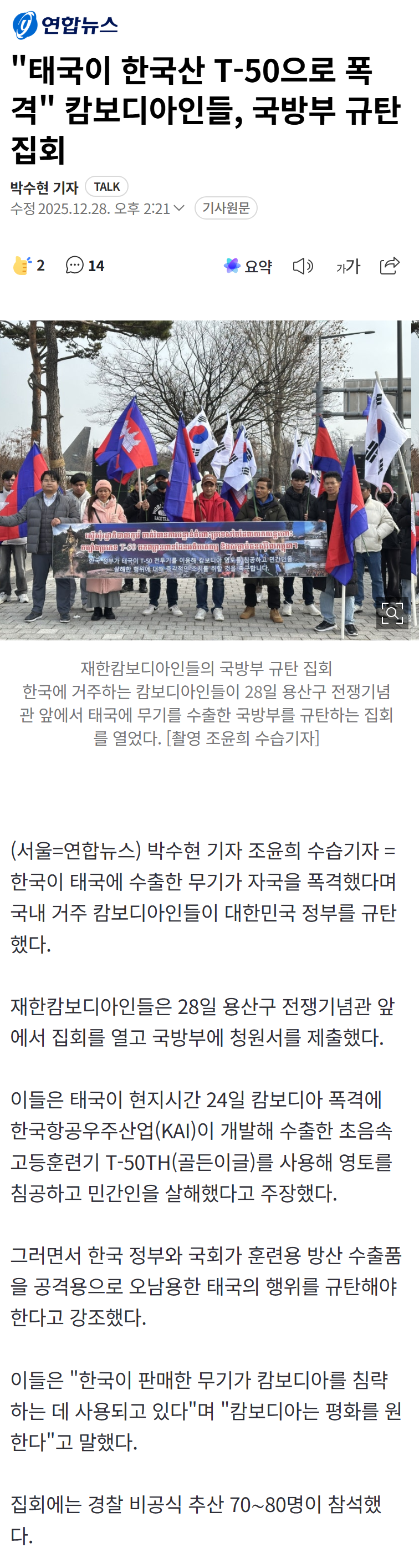 [사회] 국내 캄보디아인들, 대한민국 국방부를 규탄하기 위해 집회 [댓글수 1]