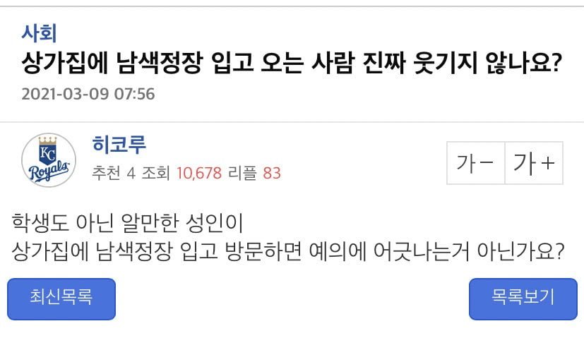 [기타] 와.. 상가집에 남색정장 입었다고 쿠사리먹음 ㄷㄷㄷ [댓글수 1]