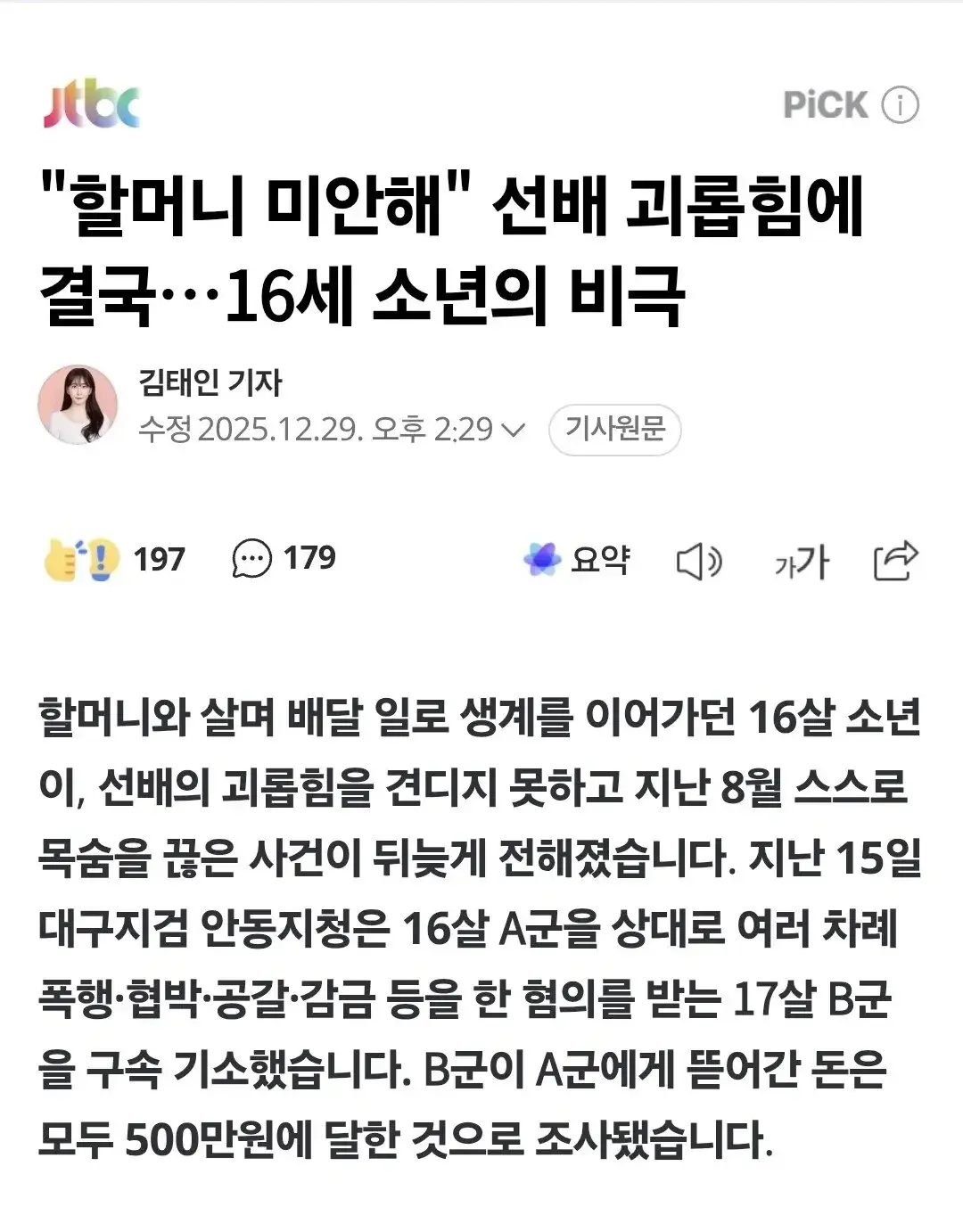 7. "할머니에게 미안하다고 전해달라" 여자 친구에게 유언