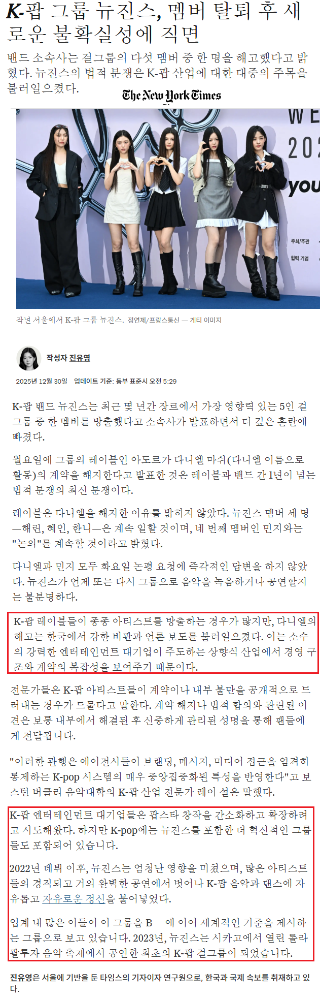 K팝 성공 이면 주목한 NYT…"내부 균열 속 아티스트는 혁신 중"
