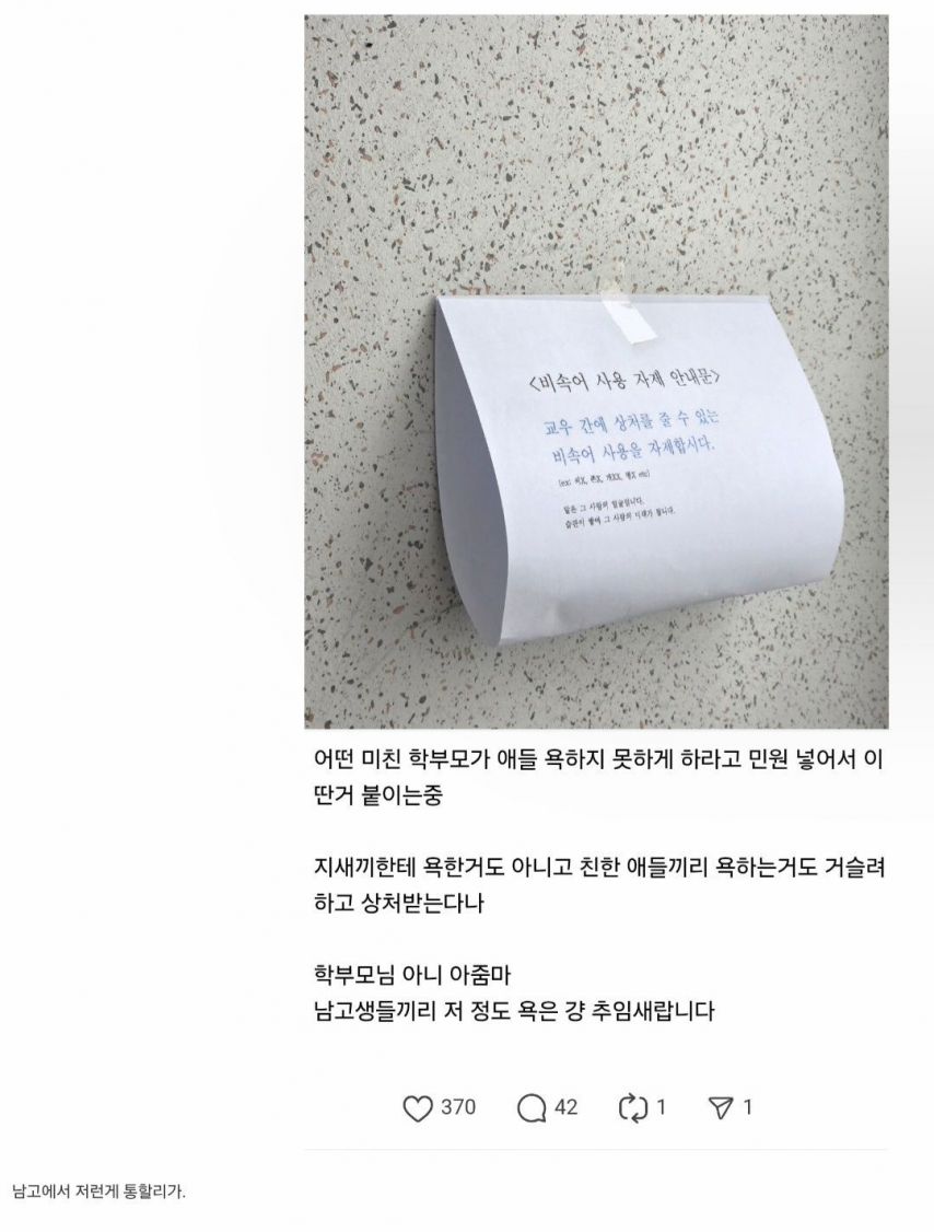 [유머] 어느 이상한 학부모 민원으로 비속어 자제 캠페인 실시.jpg [댓글수 1]