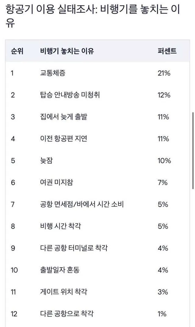 [순위] 공항에서 비행기를 많이 놓치는 이유 [댓글수 1]