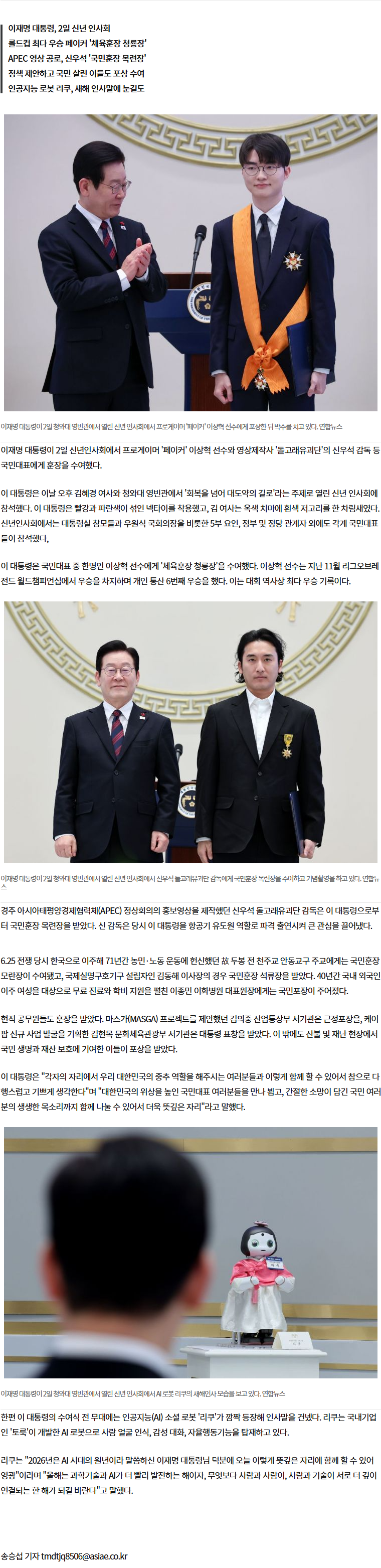 李대통령, '페이커' 이상혁·신우석 감독 훈장…"韓 위상 높인 국민대표"