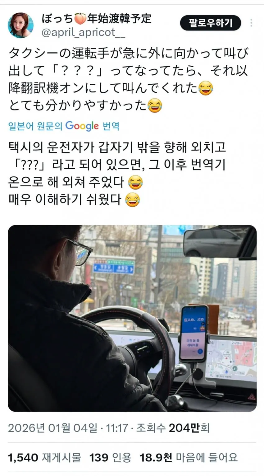 [유머] 한국에서 택시타고 감동받은 일본인 [댓글수 1]