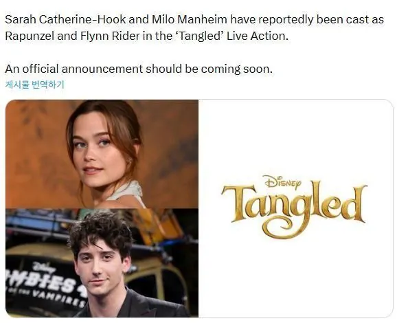 [영화] 디즈니 '라푼젤' 실사 영화 주연 캐스팅 확정.jpg [댓글수 1]