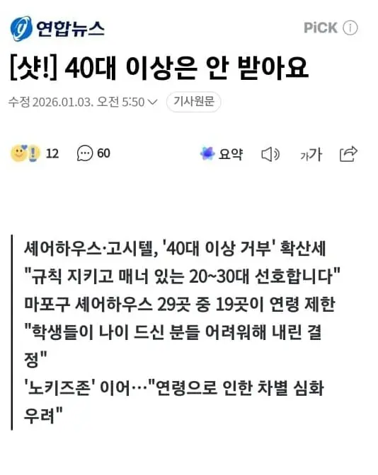 [사회] 셰어하우스, 고시텔 '40대 이상 거부' 확산세 [댓글수 1]