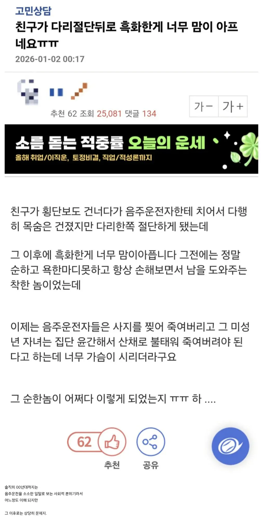 [기타] 다리 절단된 이후로 흑화한 친구 [댓글수 1]