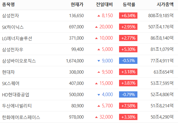 [경제] 삼성전자 시총 890조 하이닉스 507조 [댓글수 1]