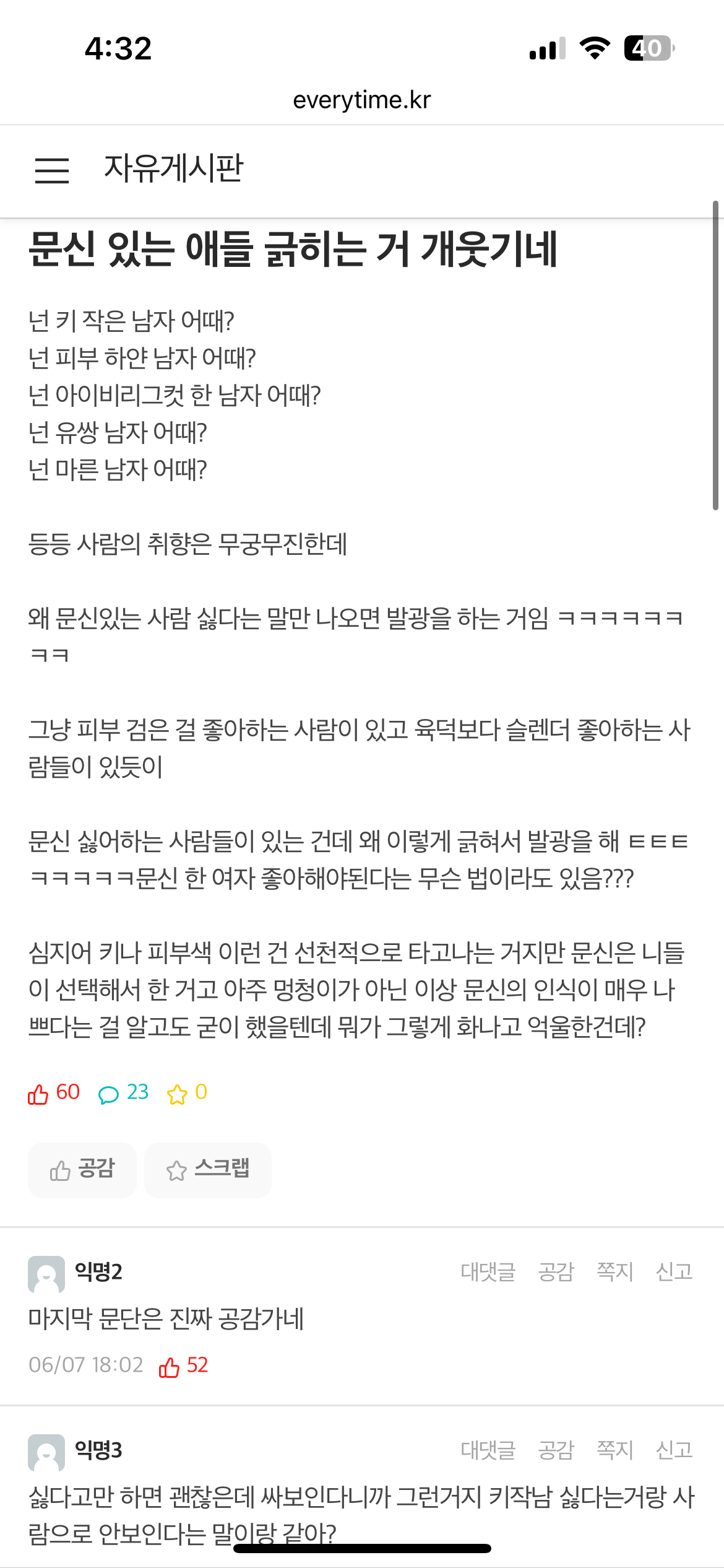 [유머] 문신 있는 애들 긁히는 거 개웃기네 [댓글수 2]