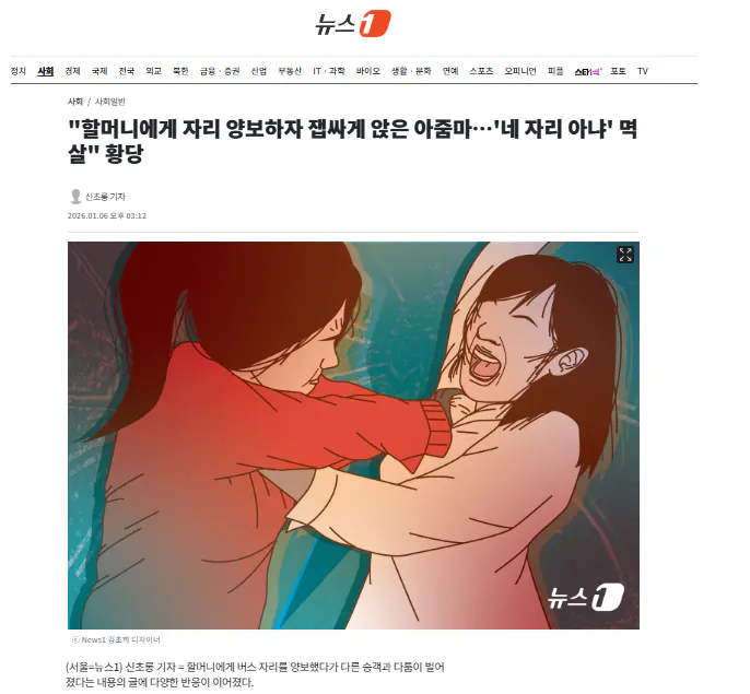 하지만 할머니는 "미안하다. 두 정거장 뒤에 내리니 그냥 앉아서 가라"라며 괜찮다고 말했다.