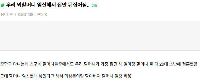 [유머] 우리 외할머니 임신해서 집안 뒤집어짐...jpg [댓글수 1]