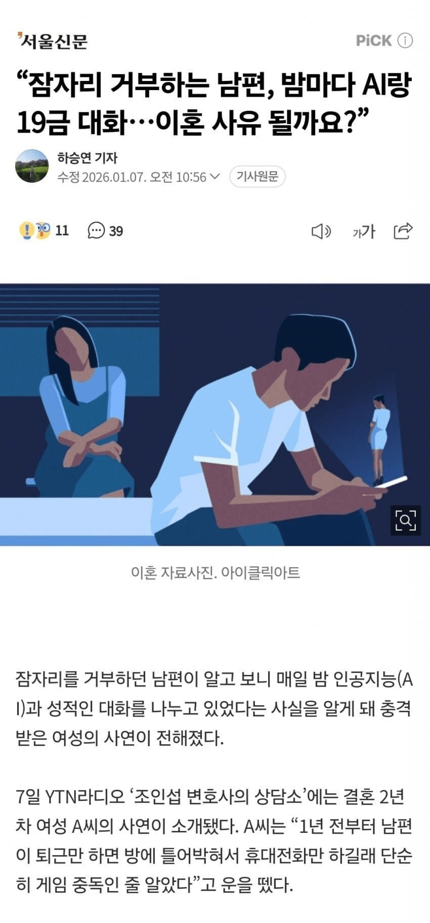 AI랑 연애감정 + 성적인 대화 나누고 한거에 배신감 느껴서