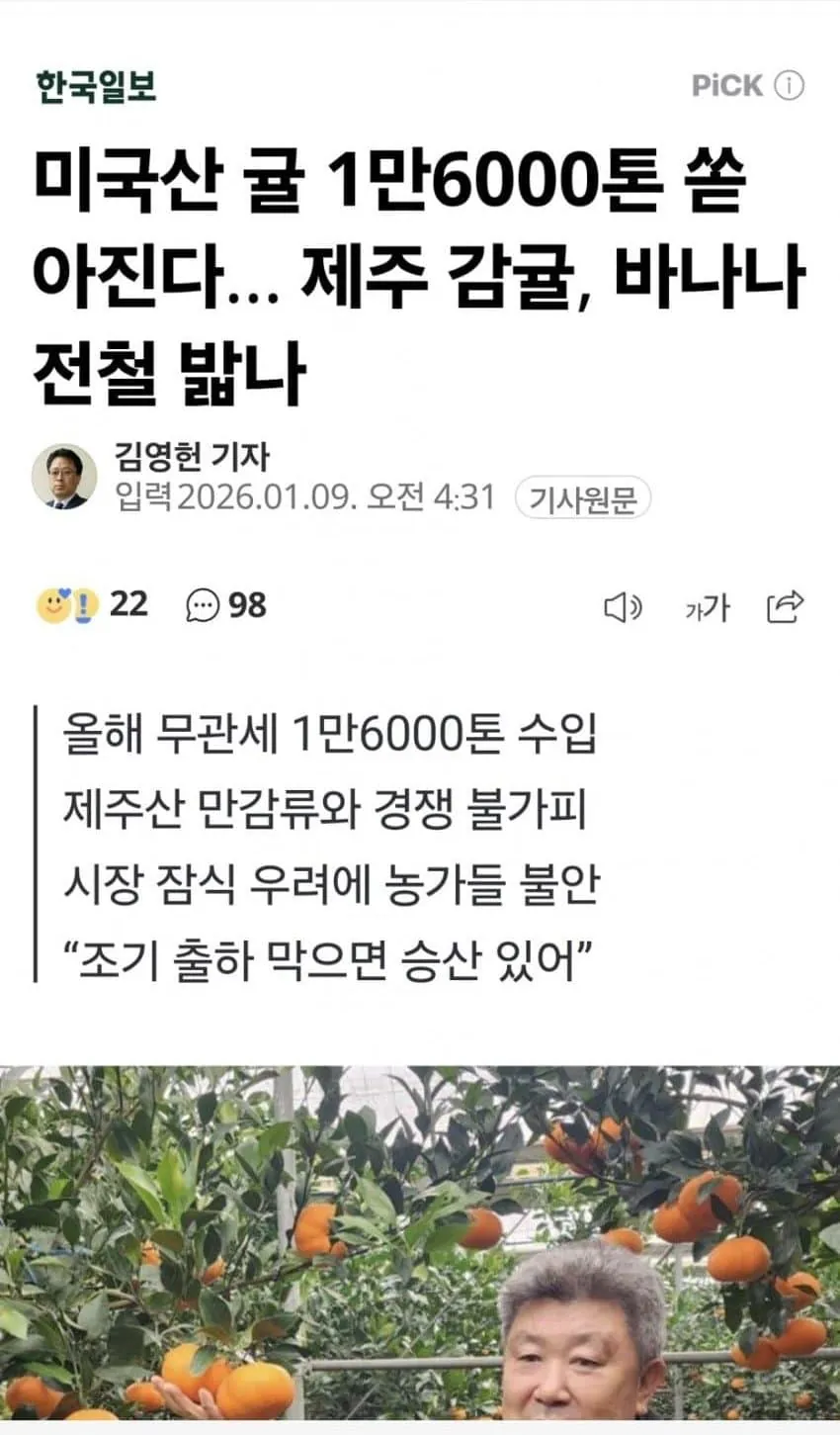 [경제] 올해부터 미국산 귤 만다린 비롯한 45개 품목 무관세 [댓글수 1]