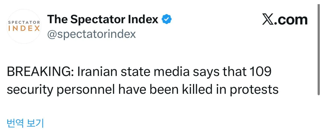 이란 국영방송, 폭도들에 의해 경찰관 109명 사망