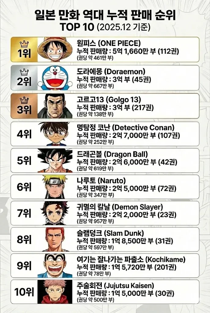 [순위] 일본 만화 역대 판매량 1~20위 [댓글수 1]
