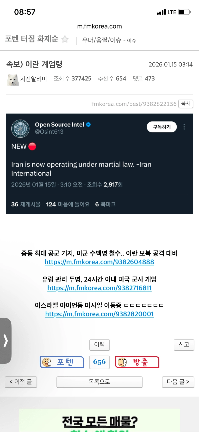 [유머] 이란 계엄 학살을 보고도 배우는게 없냐 [댓글수 1]