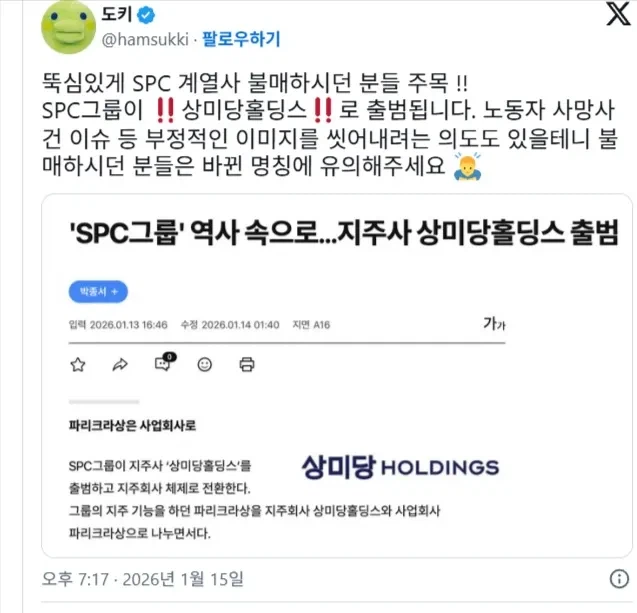 [유머] SPC, 회사명 변경 발표: "새로운 마음으로 새출발" [댓글수 6]
