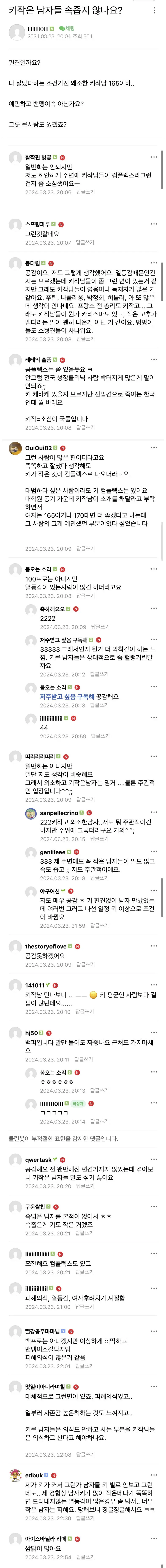 [기타] 키작은 사람은 속이 좁다는 여자들..jpg [댓글수 1]