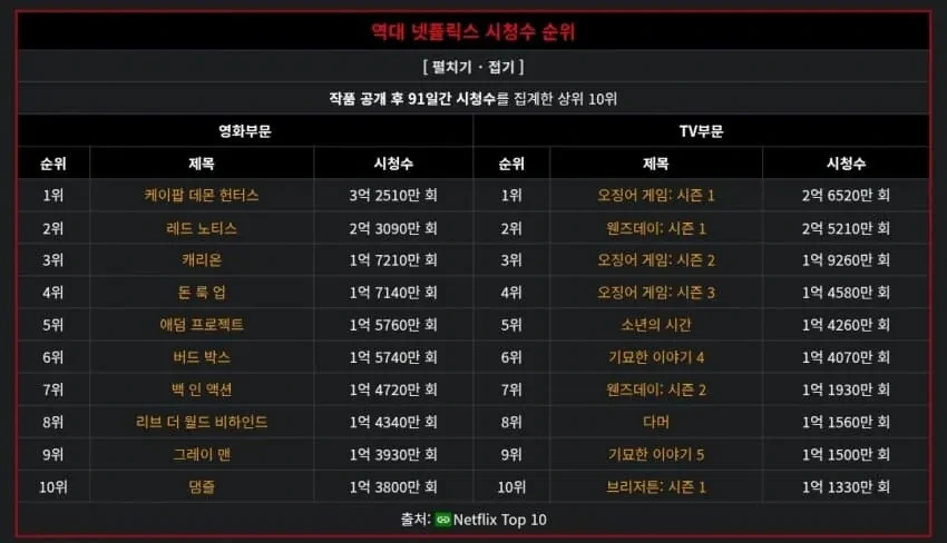 [순위] 넷플릭스 역대 시청수 순위 [댓글수 1]