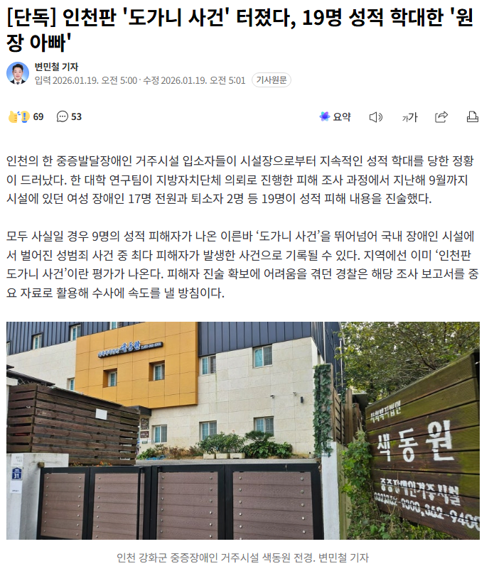 [단독] 인천판 '도가니 사건' 터졌다, 19명 성적 학대한 '원장 아빠'
