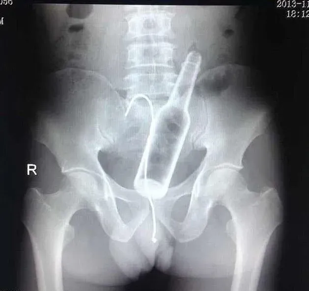 한 중국 남성이 복통을 호소하며 병원에 찾아갔음. 의사들이 통증에 원인을 묻자 남자는 원인을 모르겠다고 주장했으며 이후 X레이를 보여주자 병이 몸안에 끼어서 철사로 빼내려했다고 함