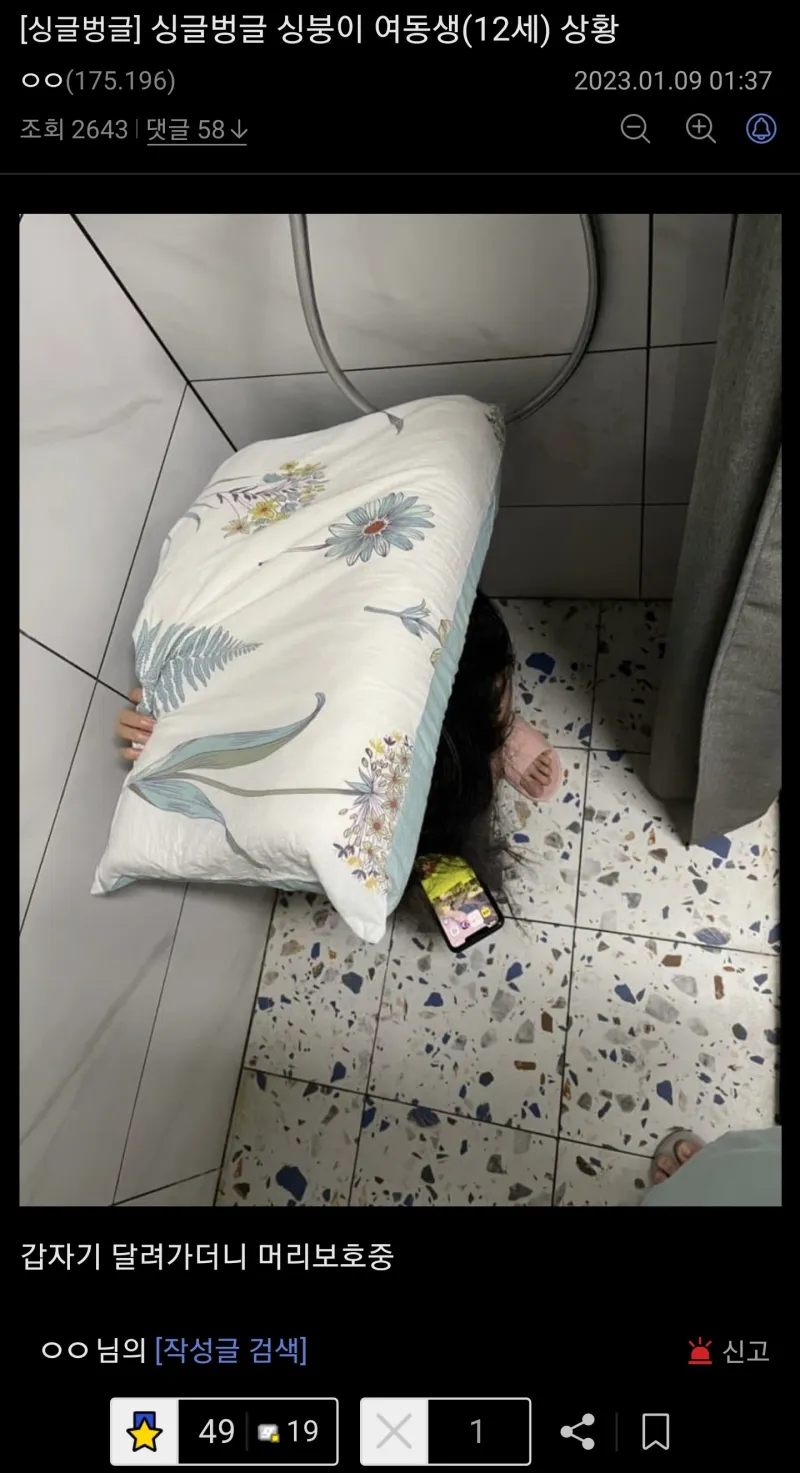 [유머] 지진을 처음 경험한 12살 여동생 [댓글수 1]