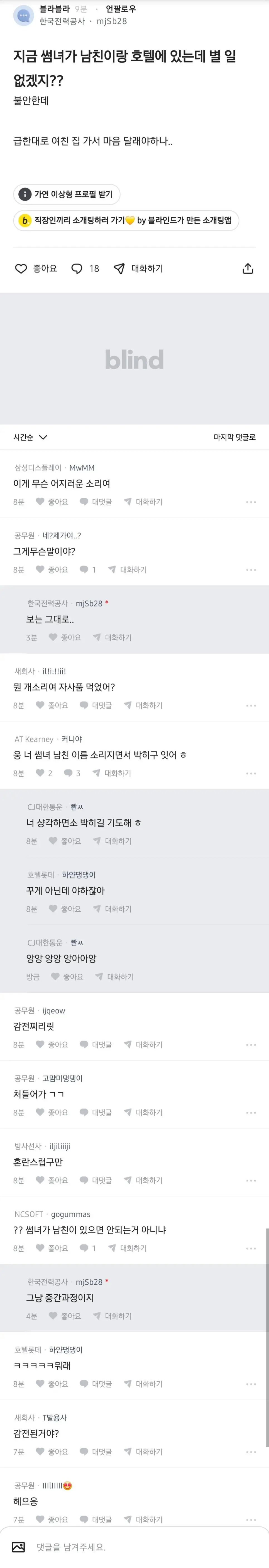 [유머] 썸녀가 지금 남친이랑 호텔에 있는데 별 일 없겠지? [댓글수 2]