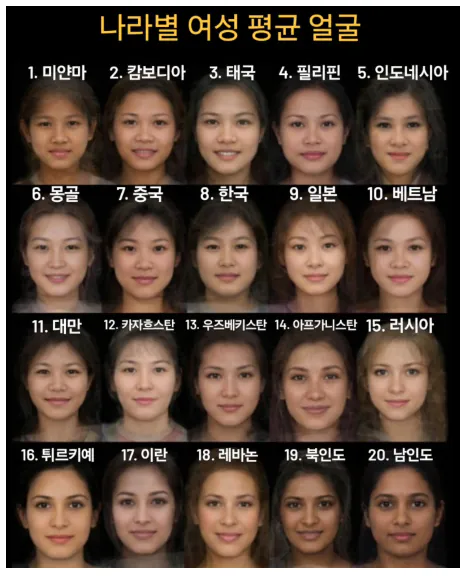 [기타] 나라별 여성 평균 얼굴 [댓글수 4]