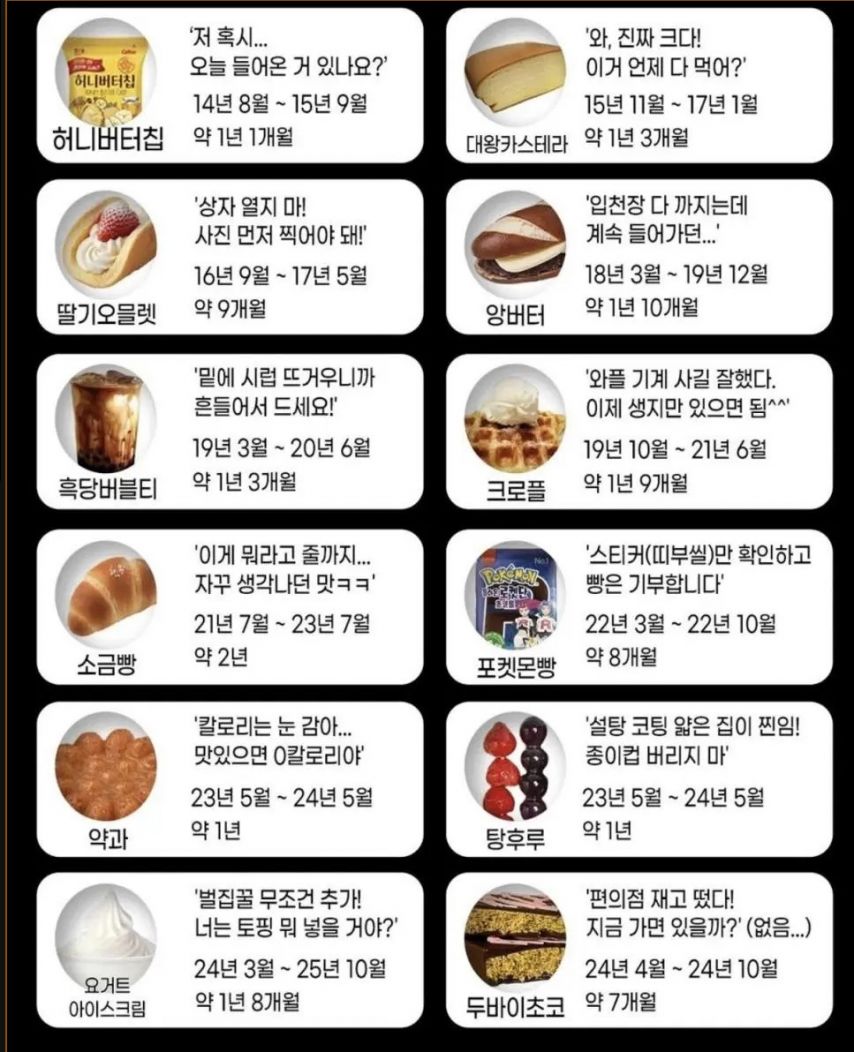 [유머] K-디저트 유행기간 정리.jpg [댓글수 1]