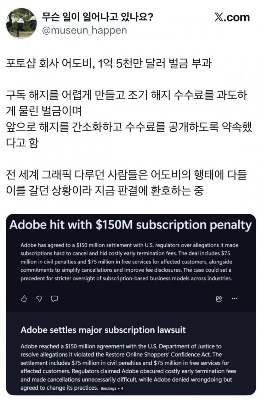 [사회] 포토샵 어도비, 1억 5천만 달러 벌금 부과 ㄷㄷ [댓글수 1]