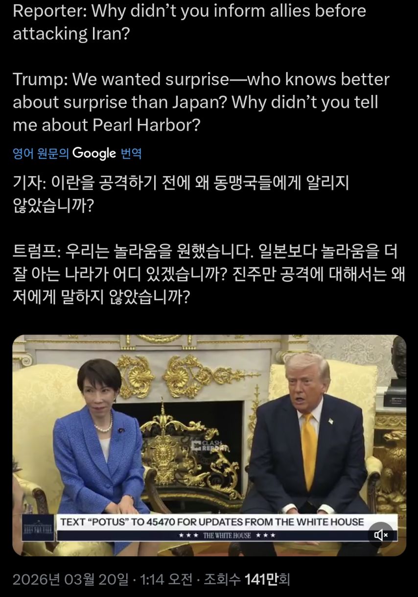 우리는 선전포고 없이 진주만 때렸다가 사형당했는데 트럼프는 그 각오가 되어있는가..ㅋㅋㅋ