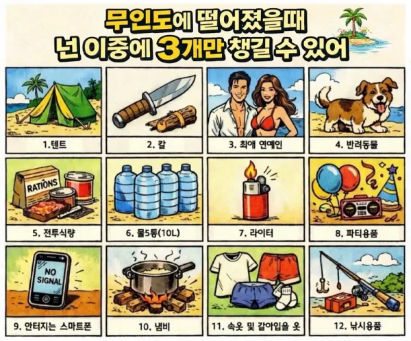 [유머] 무인도에 세 가지만 가져갈 수 있다면? [댓글수 1]