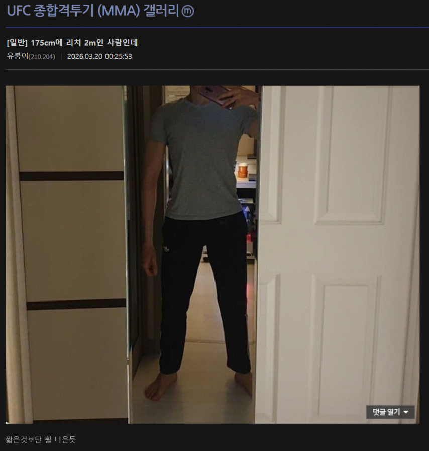 [유머] 키 175cm에 리치 2m 라는 사람 [댓글수 4]