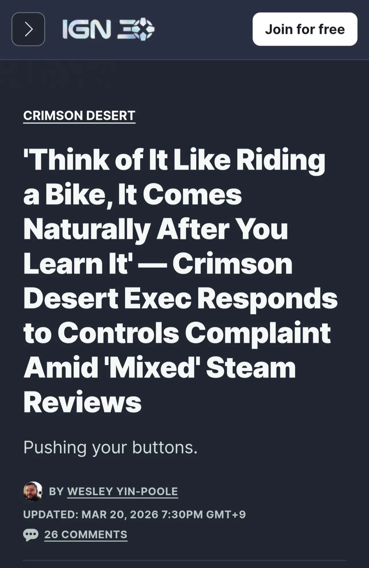 - 2026년 3월 20일 저녁 7시 IGN 기사 -