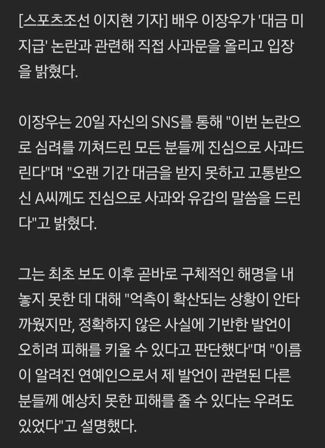 [기타] 이장우, 침묵 끝 해명 "20년 지기 친구 믿었는데…거래 구조 몰랐다" [댓글수 1]