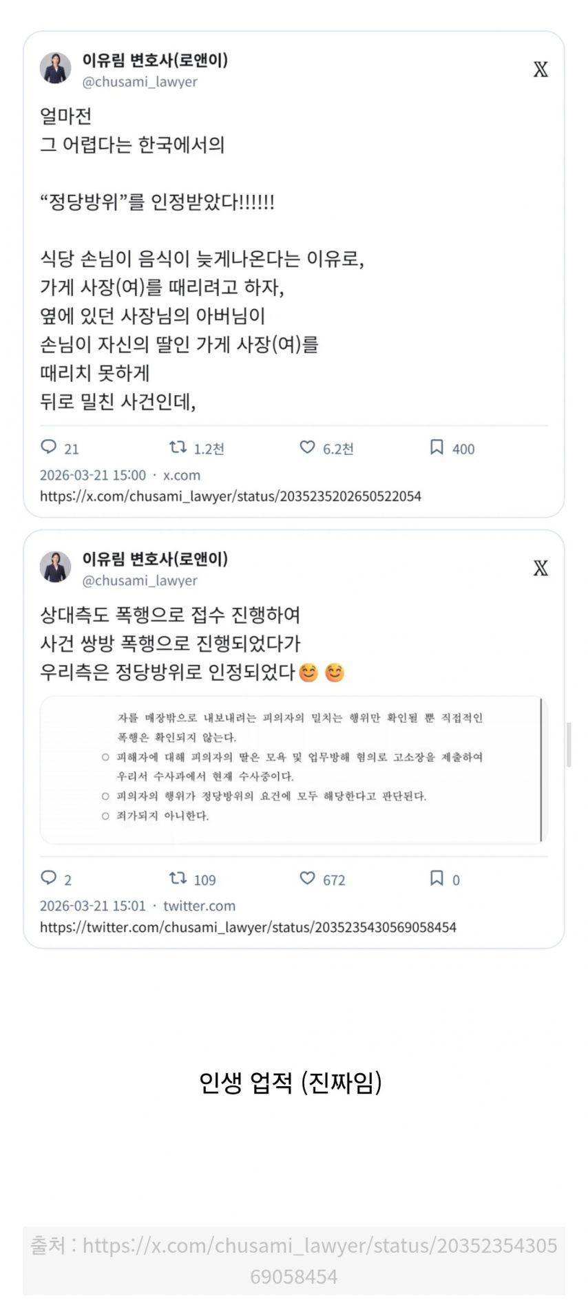 [유머] 정당방위 인정 받은 거 자랑하는 변호사.jpg [댓글수 1]