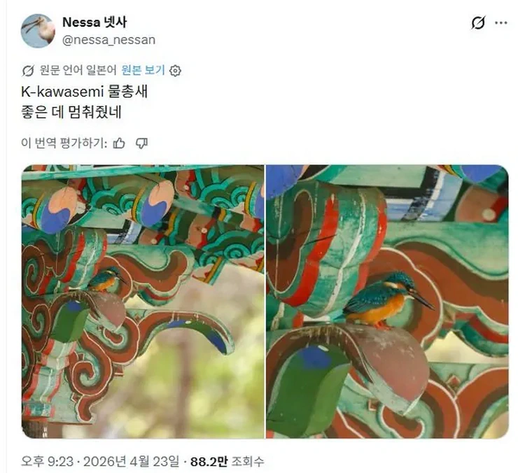 [유머] X] 단청에 숨은 새를 찾은 일본인.twt
