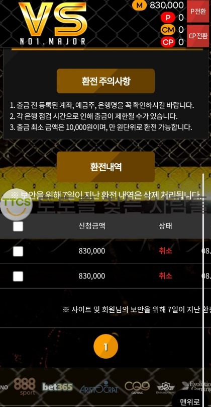 1. 지속되는 환전 취소 처리, 브이에스는 먹튀를 생각했네요.