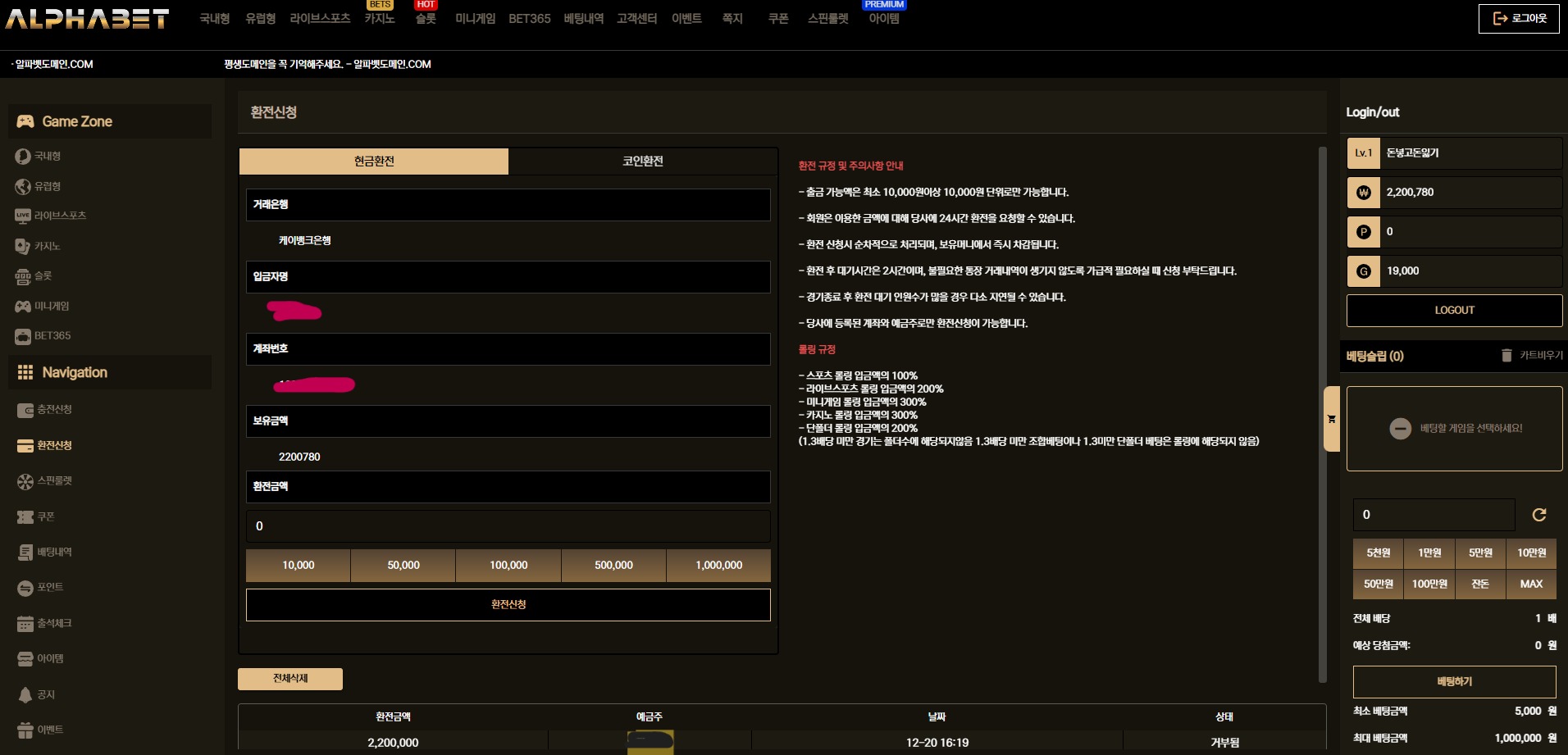 환전신청 누르니 바로 거절후 아이디 탈퇴처리 텔레그램 연락해도 안보네요원금까지 싹다먹당했습니다