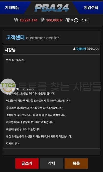 해당 놀이터에서 손해 본 돈이 5천만원을 상회합니다. 이번에 사건이 터진 1천만원을 받았다고 한들, 저는 또다시 충전 후 멘징하려고 다 쏟아부었을 텐데 이런 의미 없는 악수를 두는 사이트는 뇌를 빼고 장사하는 것이 분명하죠. 부랴부랴 만든 핑계로 환전 지연 문구 메시지 날리더니 이제는 아주 잠수 탔어요.