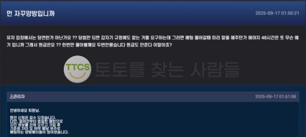 추가 롤링 돌려도 출금 처리도 안 해주고 너무 답답한 상황에 저는 지쳐갑니다. 규정에도 없던 이야기를 하는데 그럼 베팅 찍었을 때 먼저 말을 해줬다면 제가 덜 서운했을 겁니다. 이런 막무가내식으로 운영하는 사이트는 처음 겪는데 기분이 참 별로네요. 사이트 문 닫기 전에 욕이라도 시원하게 박고 싶습니다.