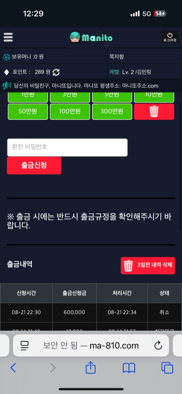 마니또 먹튀 2시간뒤에 환해준다고 엉뚱한소리함